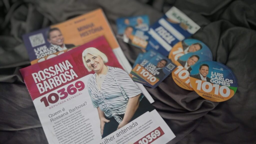 Criação do visual completo, incluindo paleta, tipografia, símbolos e padrões que reforçam o posicionamento do candidato.